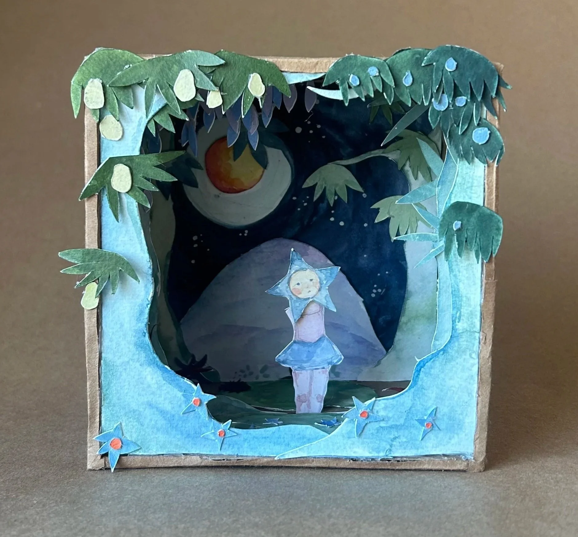 Wandering, paper, watercolor, cardboard, 5” x 5”