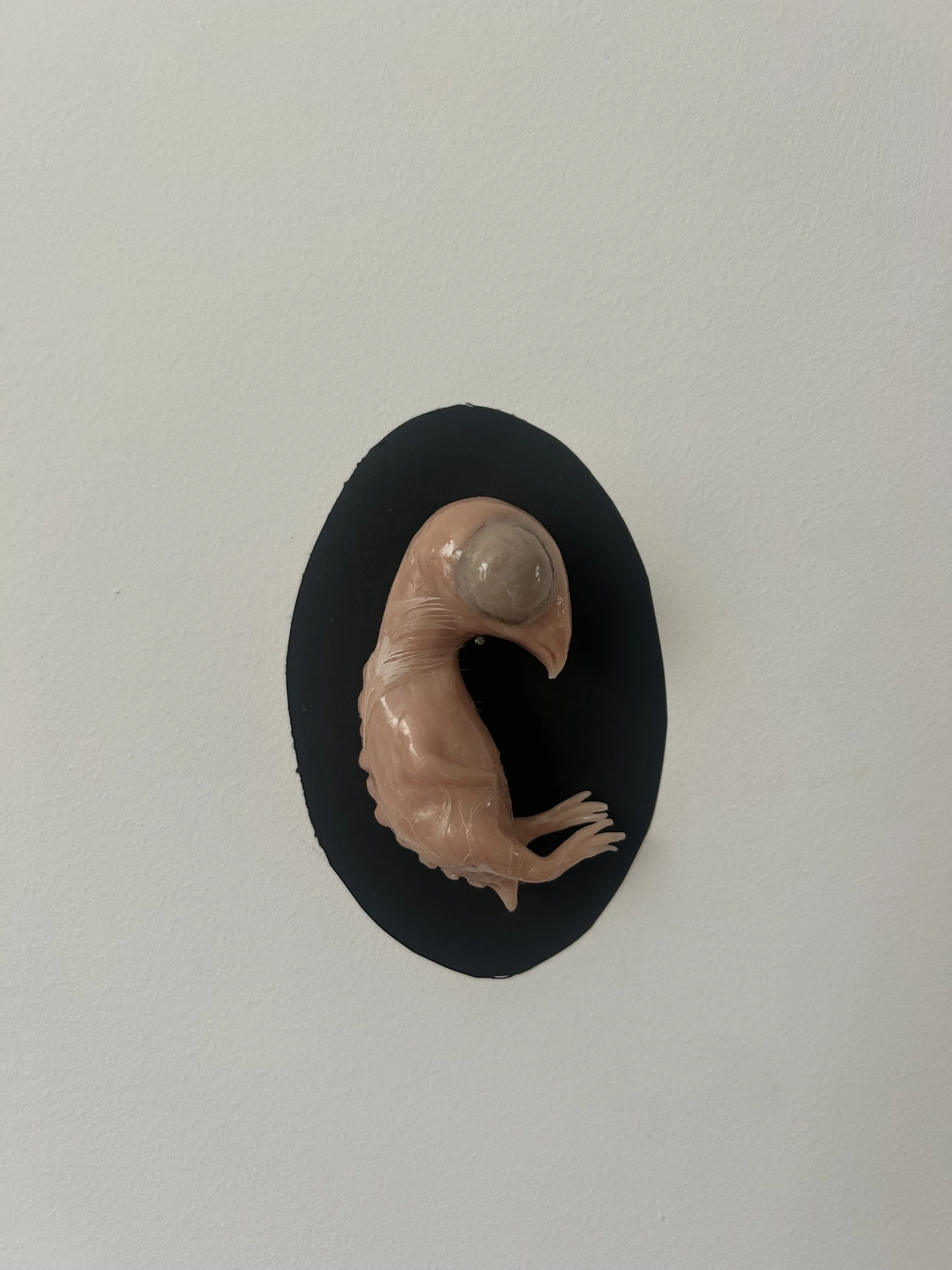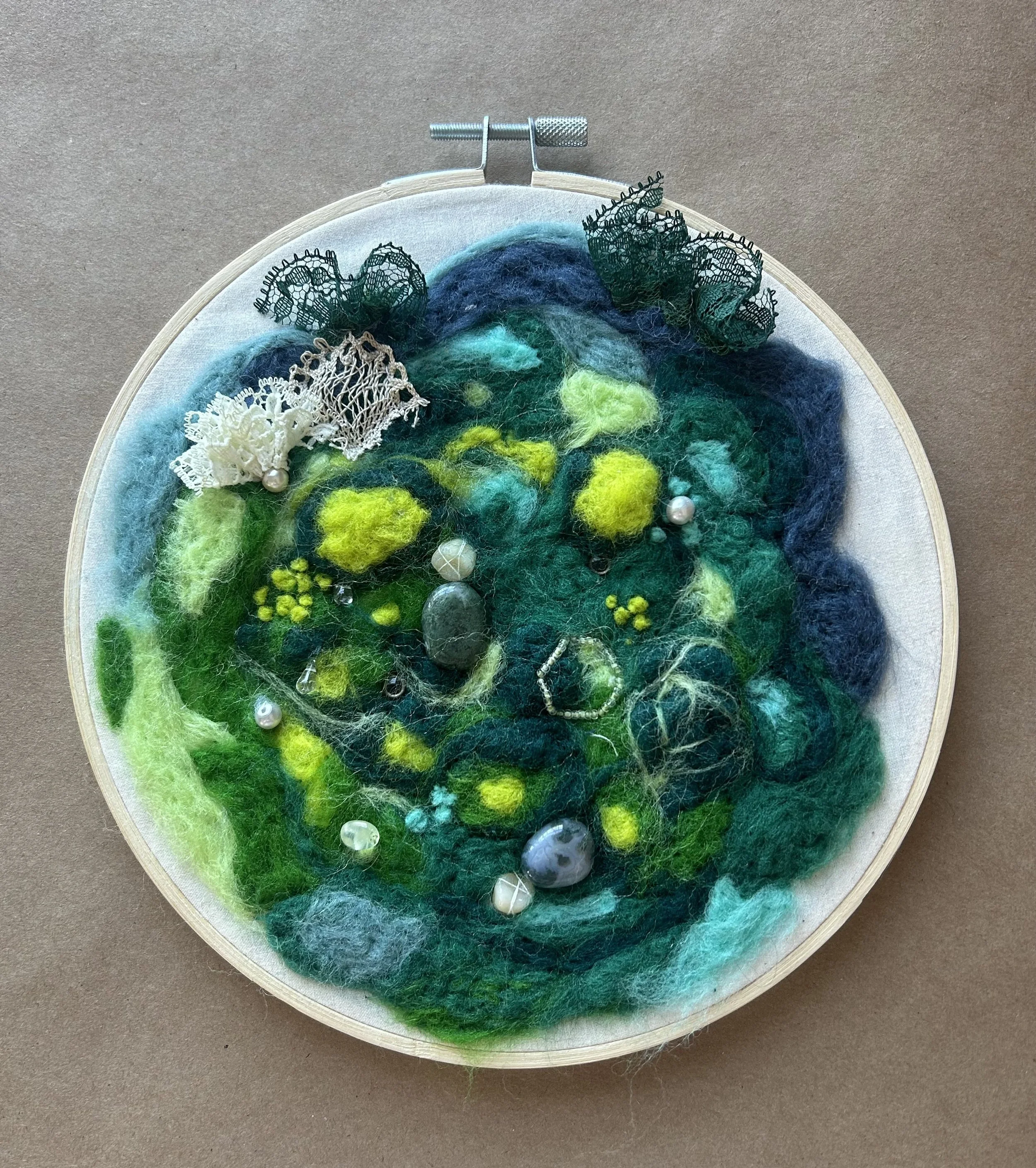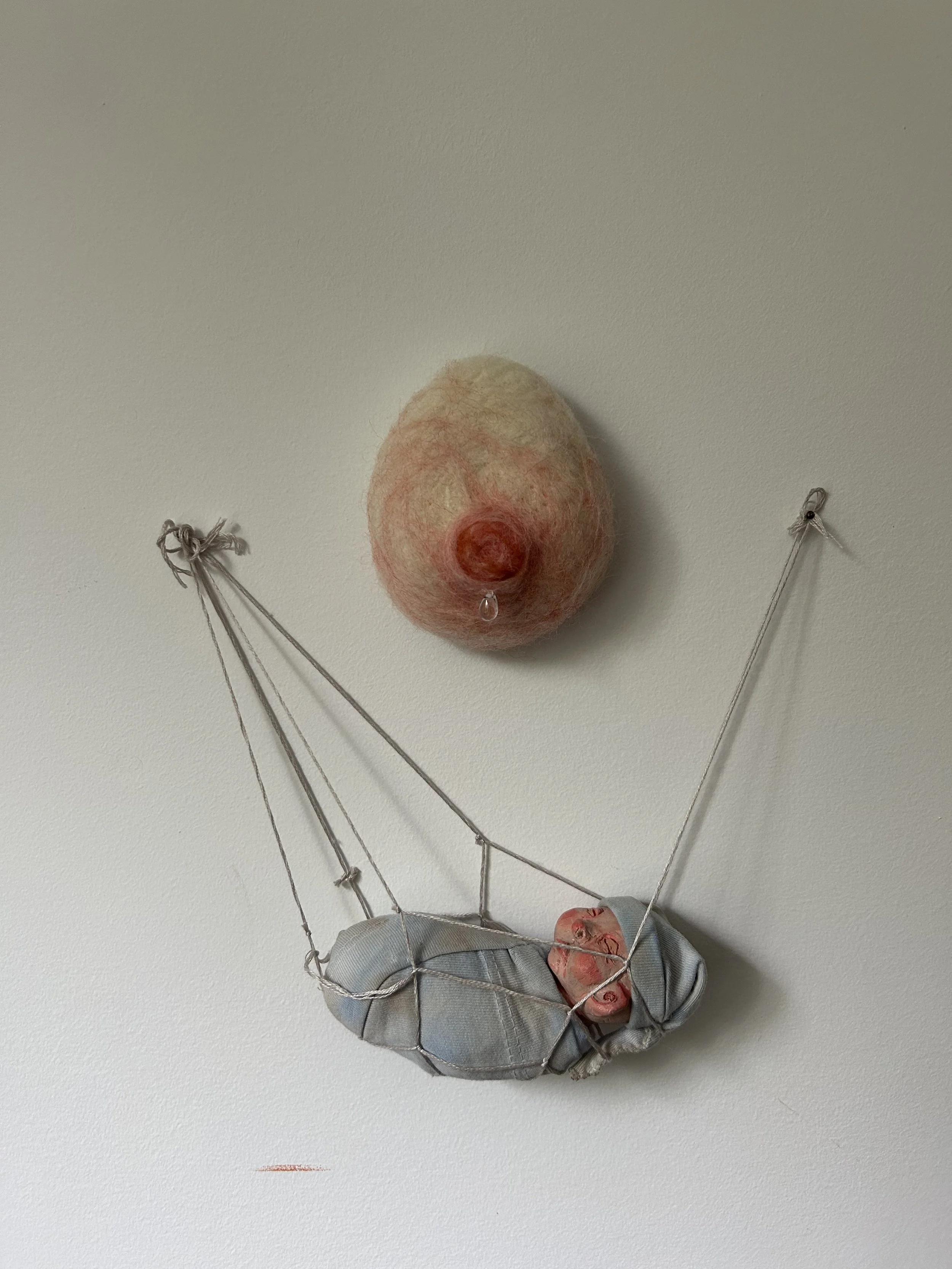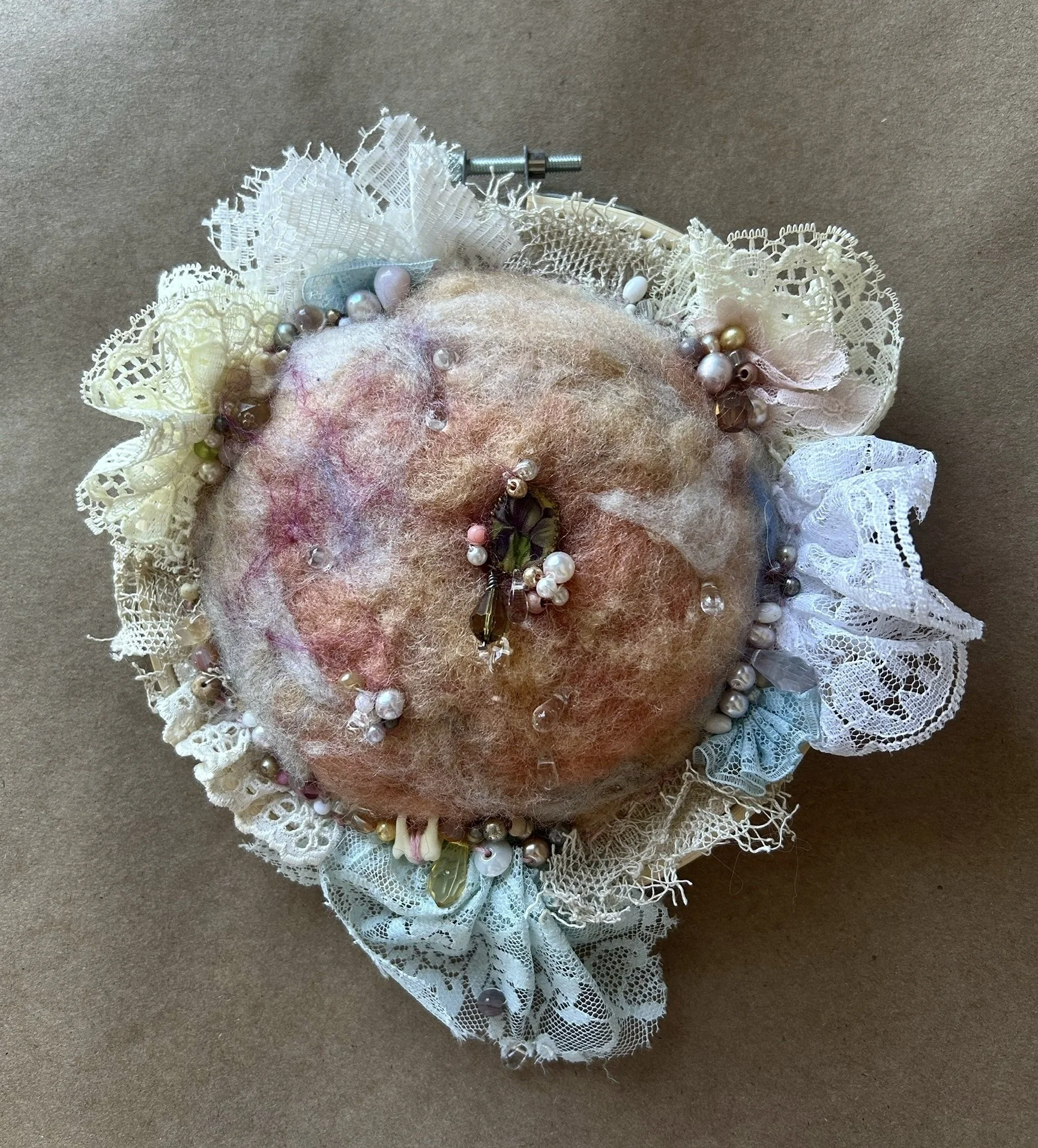Peach, wire, plaster, wool, acrylic, 10.5”x9”x4”