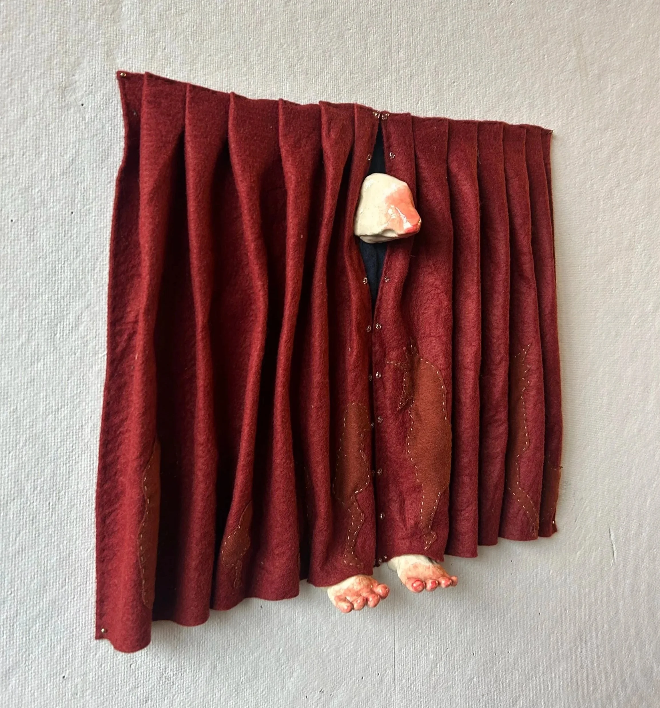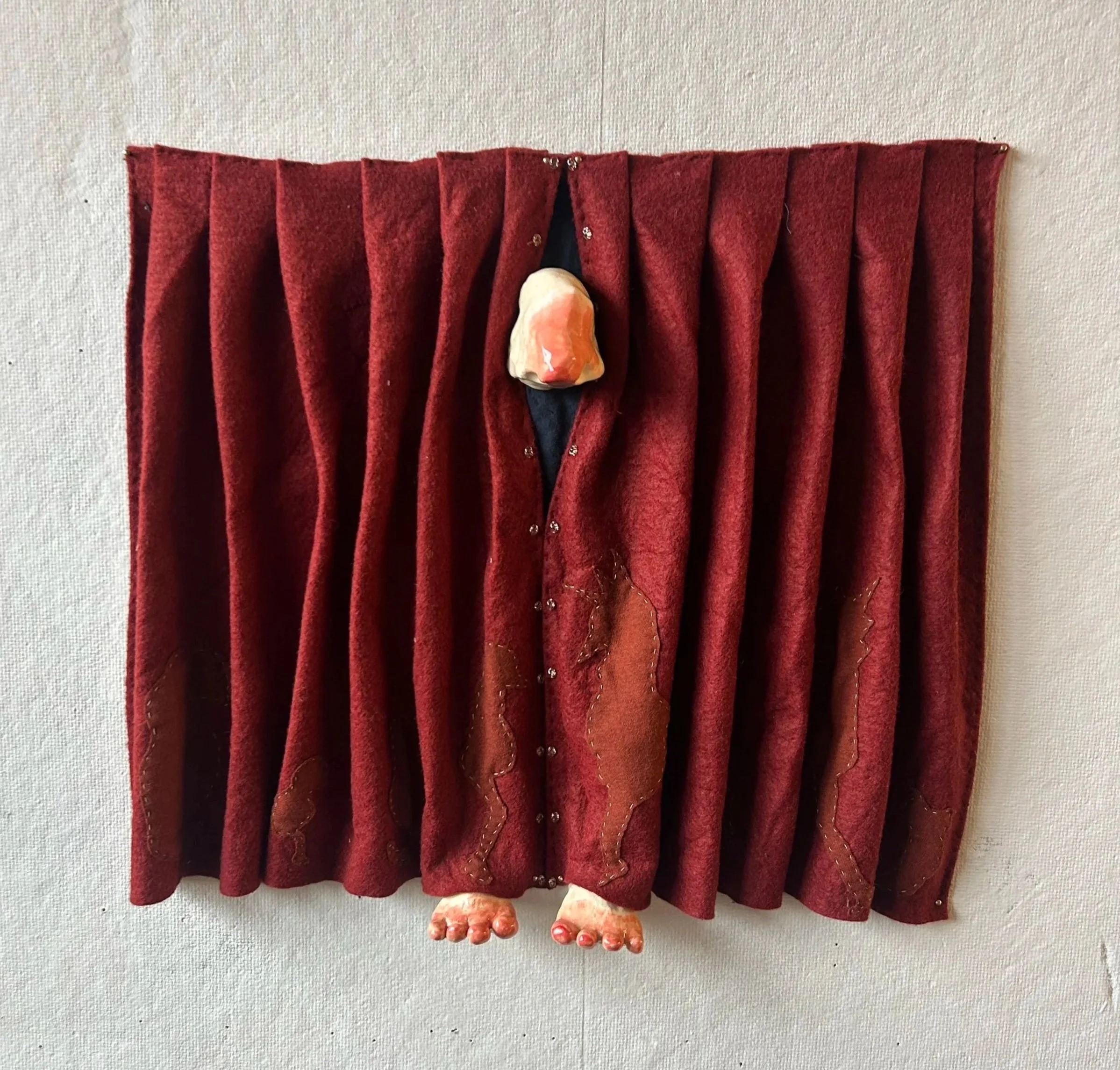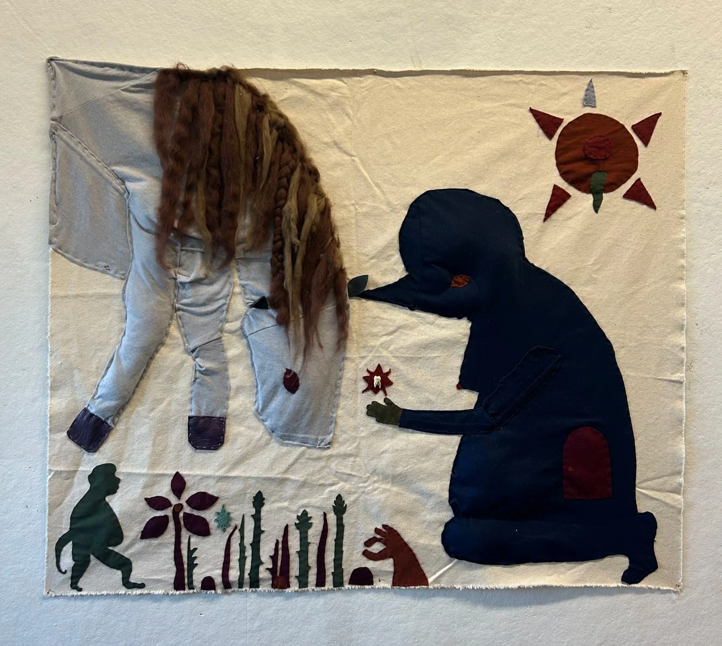 A Curious Beast, felt, ceramic, beading, 12”x18”