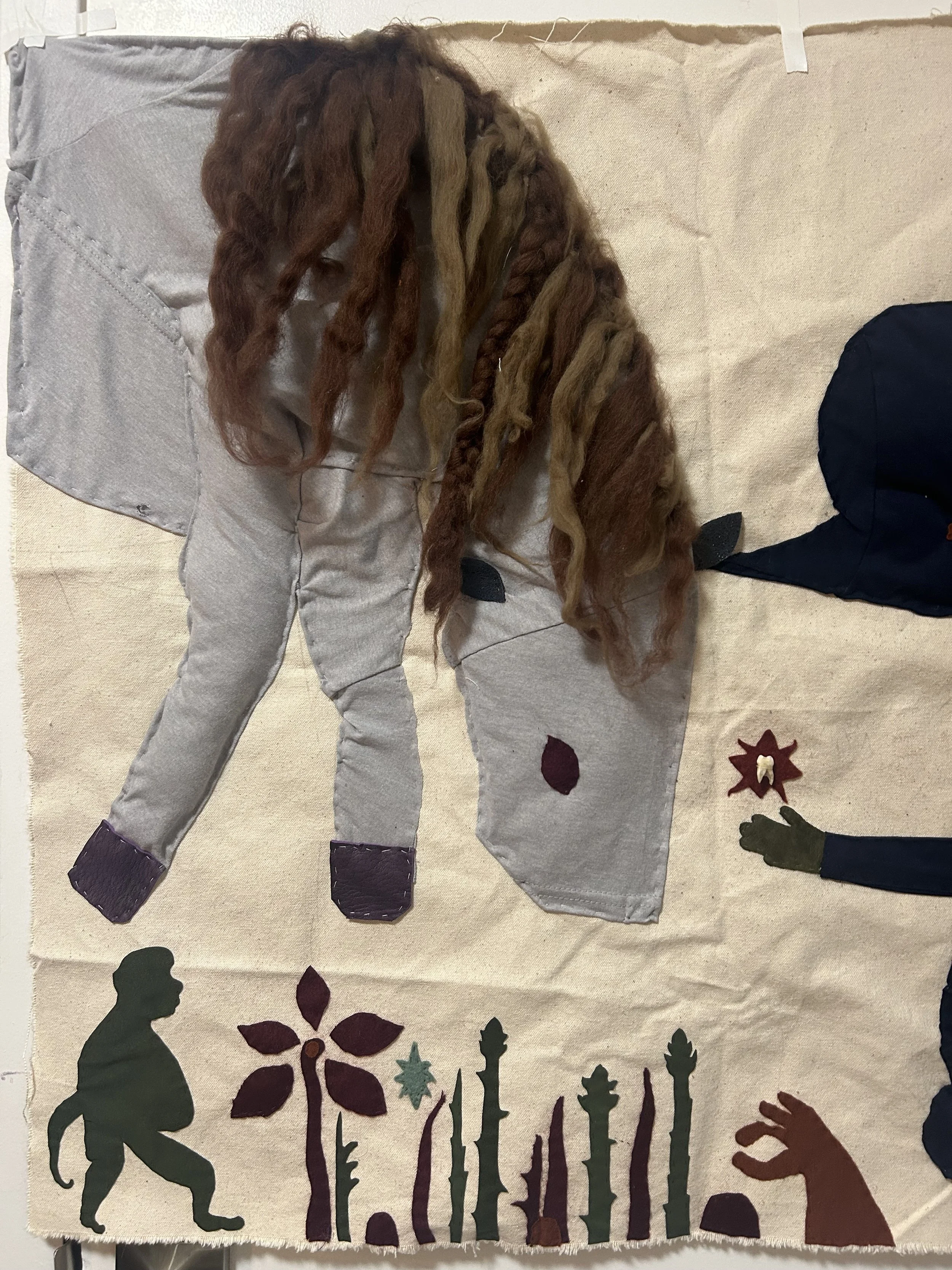 Birth; A Conscious Theory, Wall Hanging, fabric, human tooth, wool, 30”x36'“