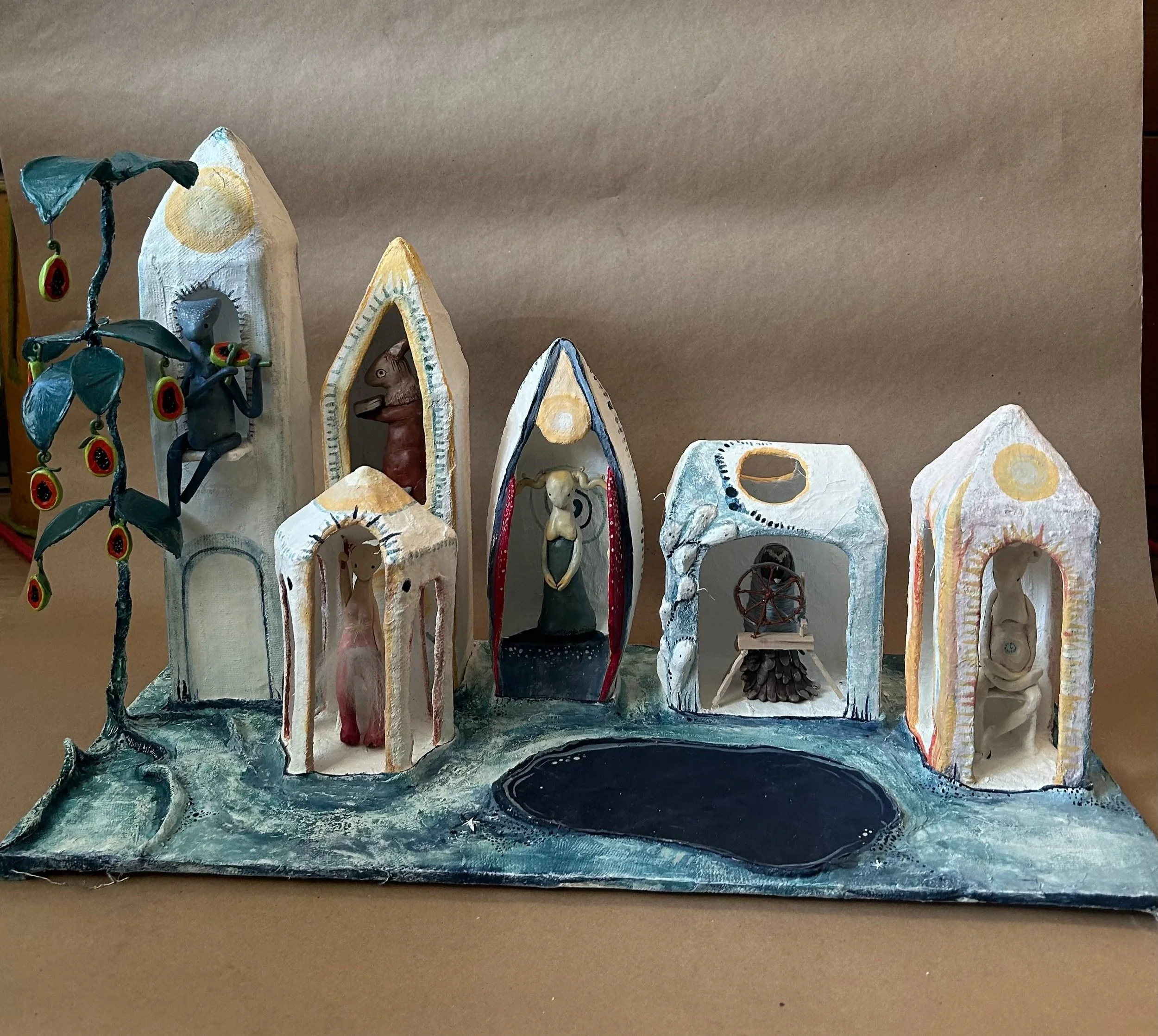 Wandering Curio: A New Exploration, wire, plaster, acrylic, clay, 8”x8”x12”