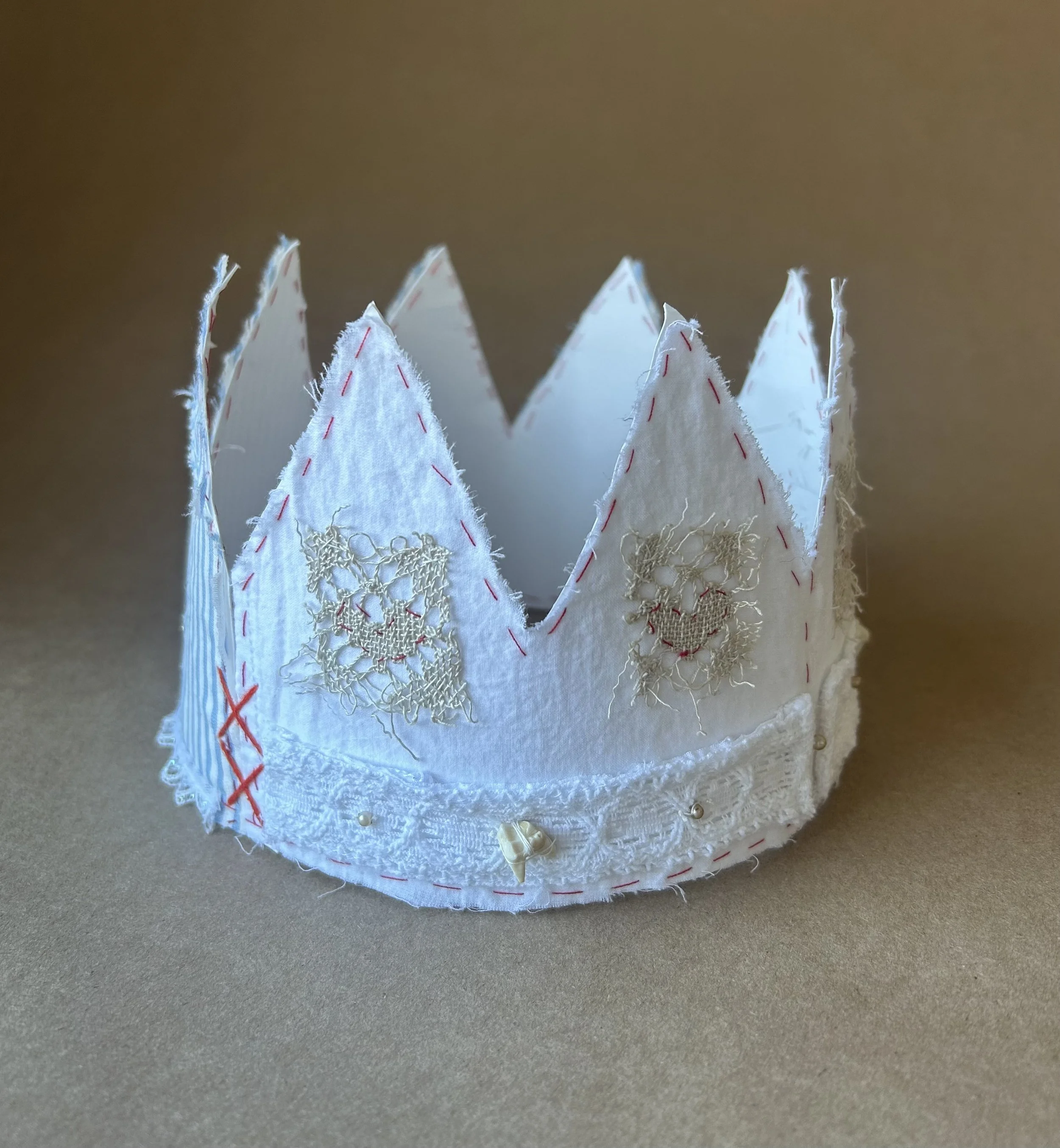 Willow’s Pockets, scrap fabric, found objects, 4”