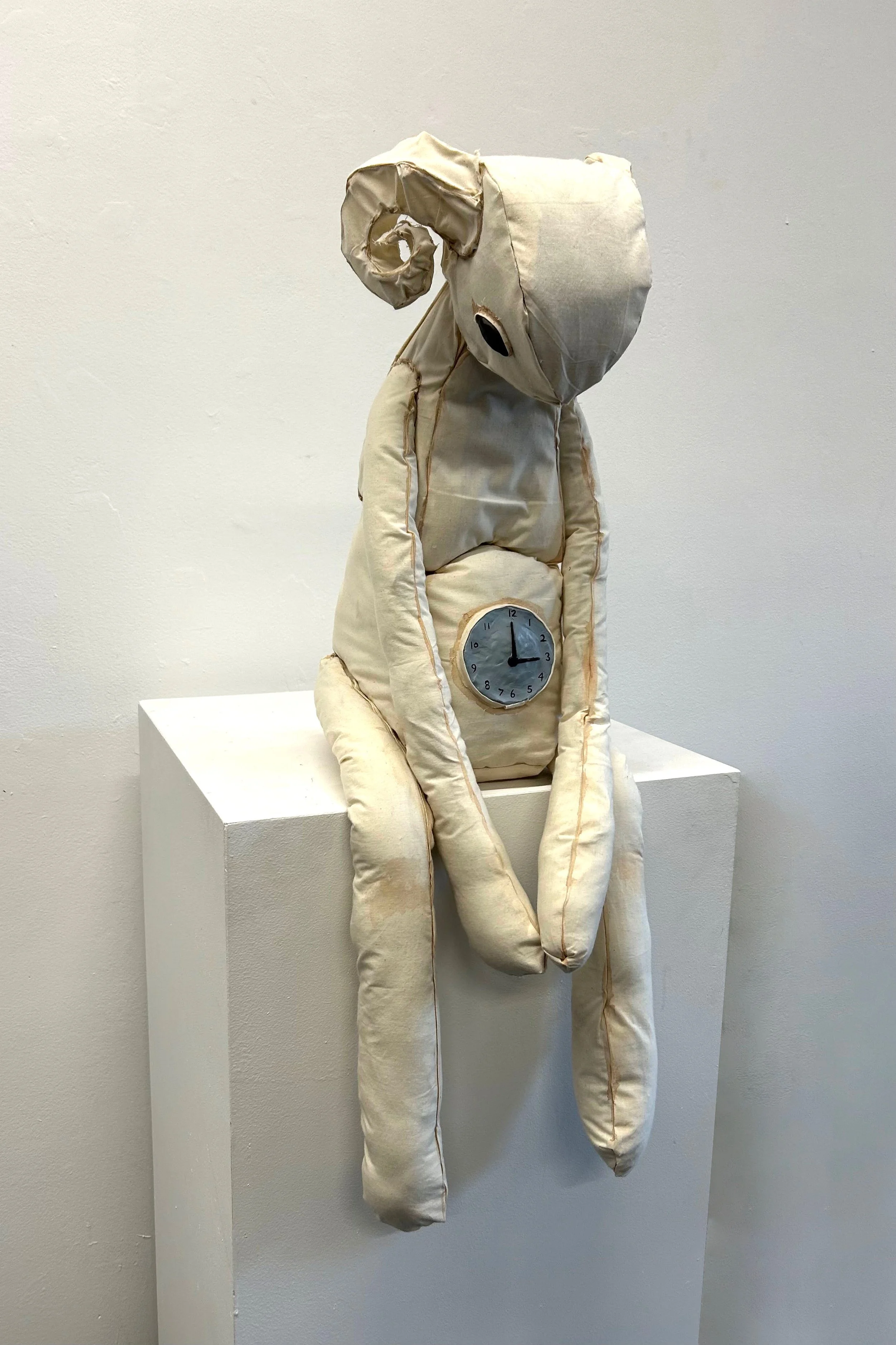 Creature of Time, cardboard, fabric, clay, 36”x12”x8”